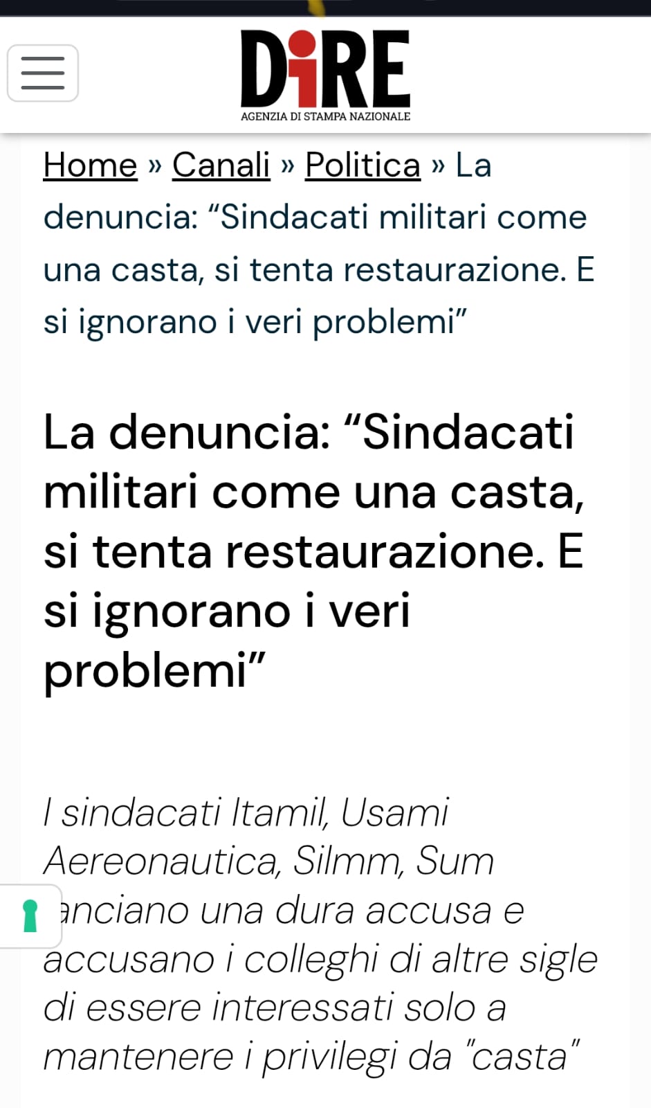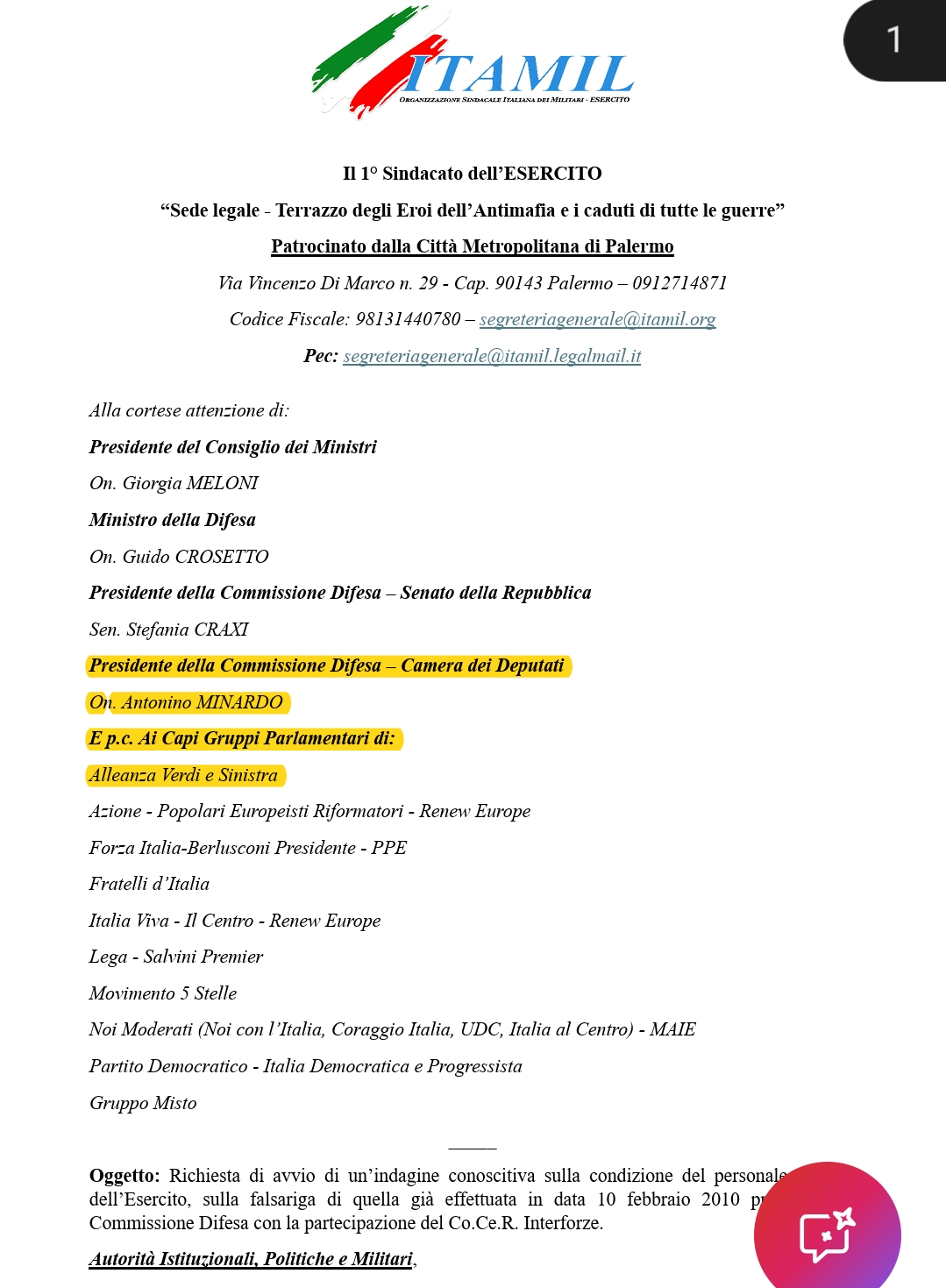 ITAMIL: dopo le nostre richieste troviamo riscontro nelle parole del Presidente della Commissione Difesa On. Minardo, che ringraziamo.